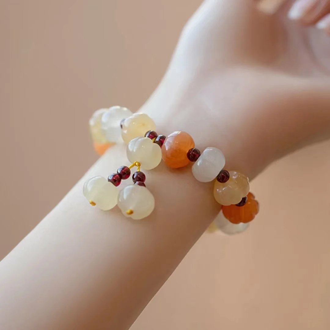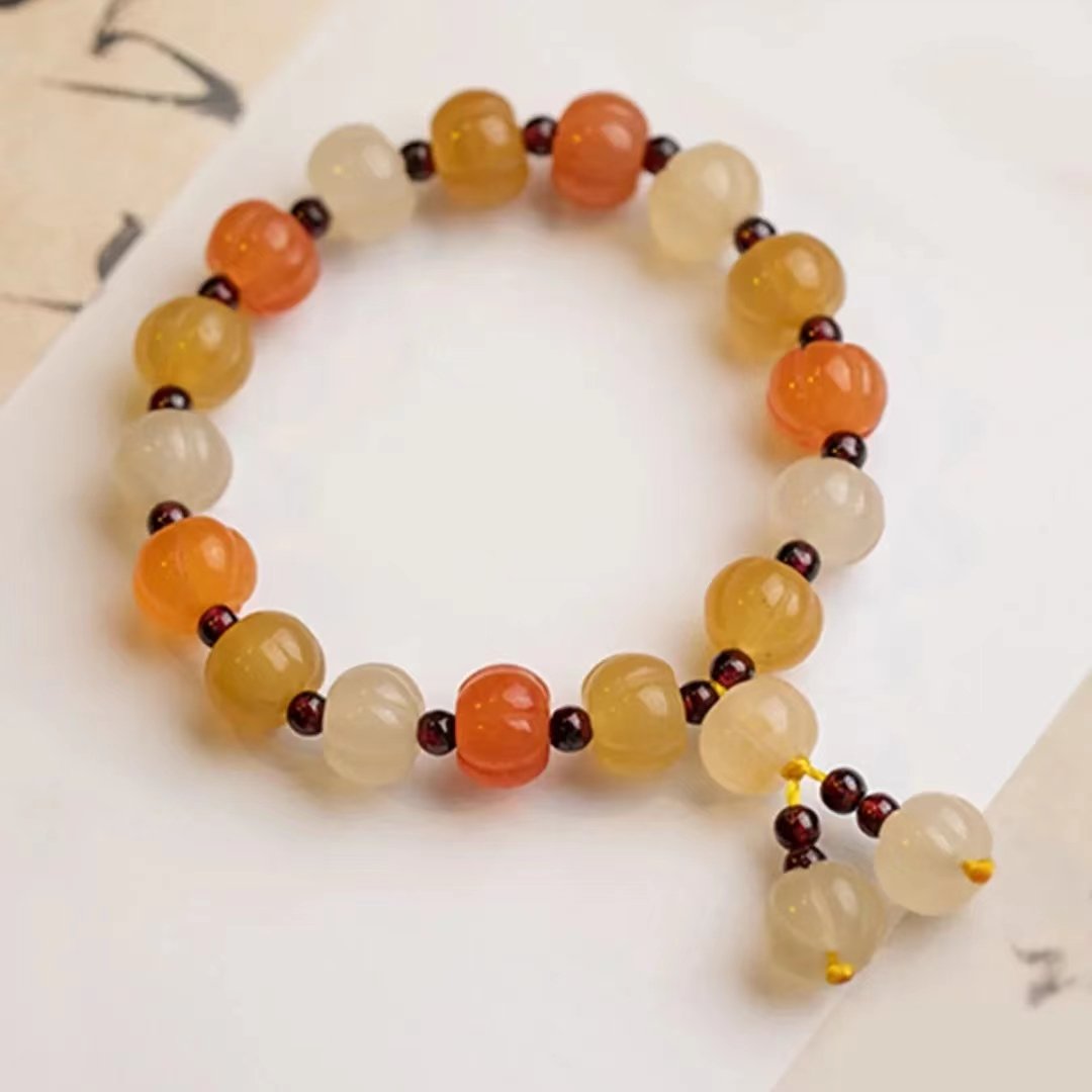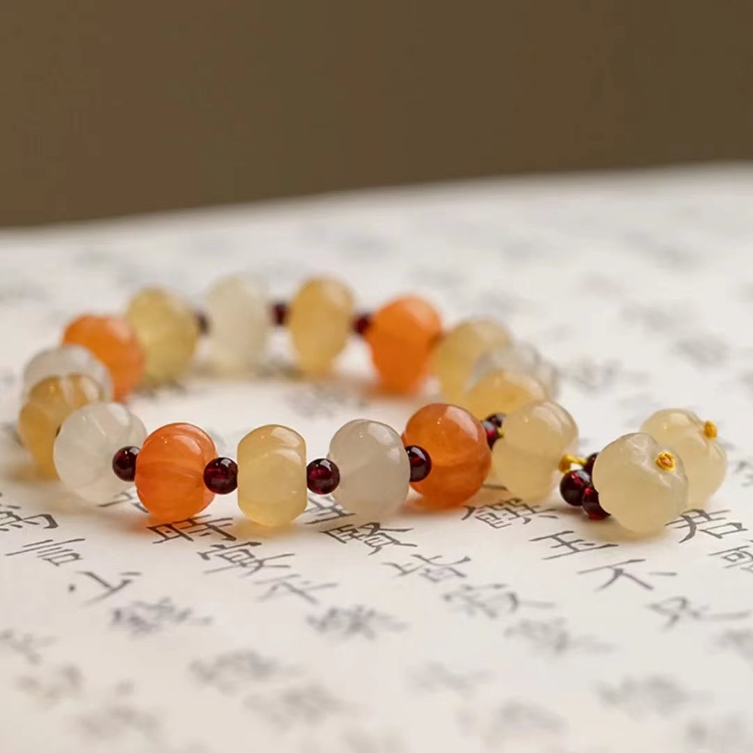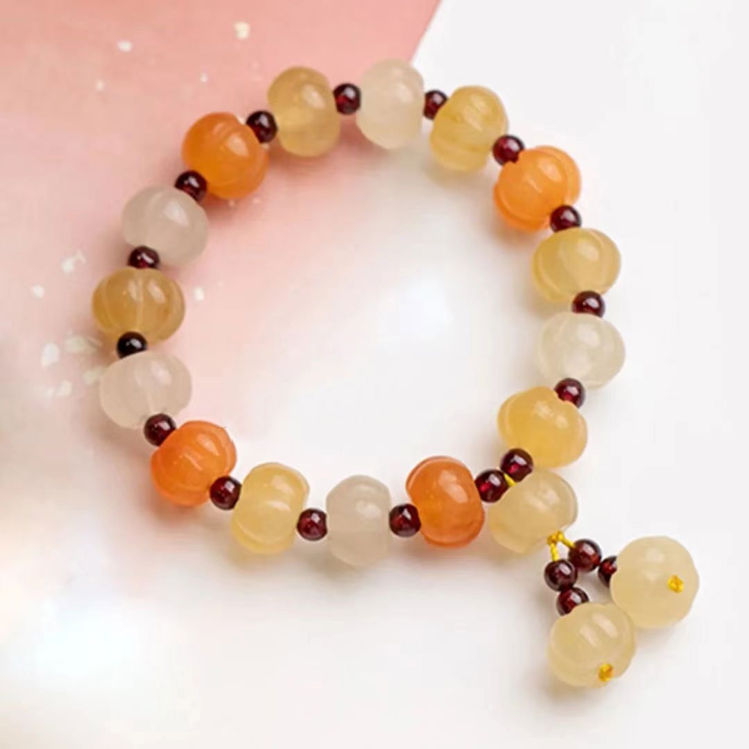 Gold silk jade pumpkin bead bracelet-148